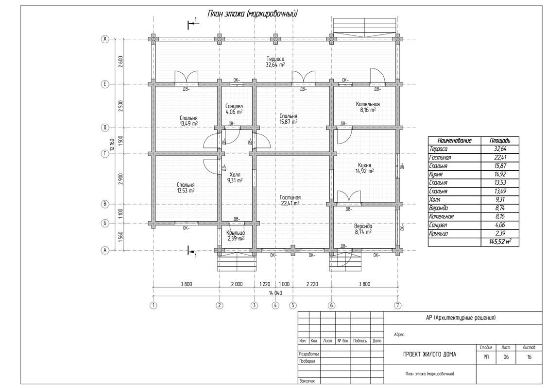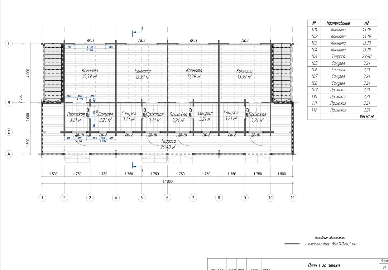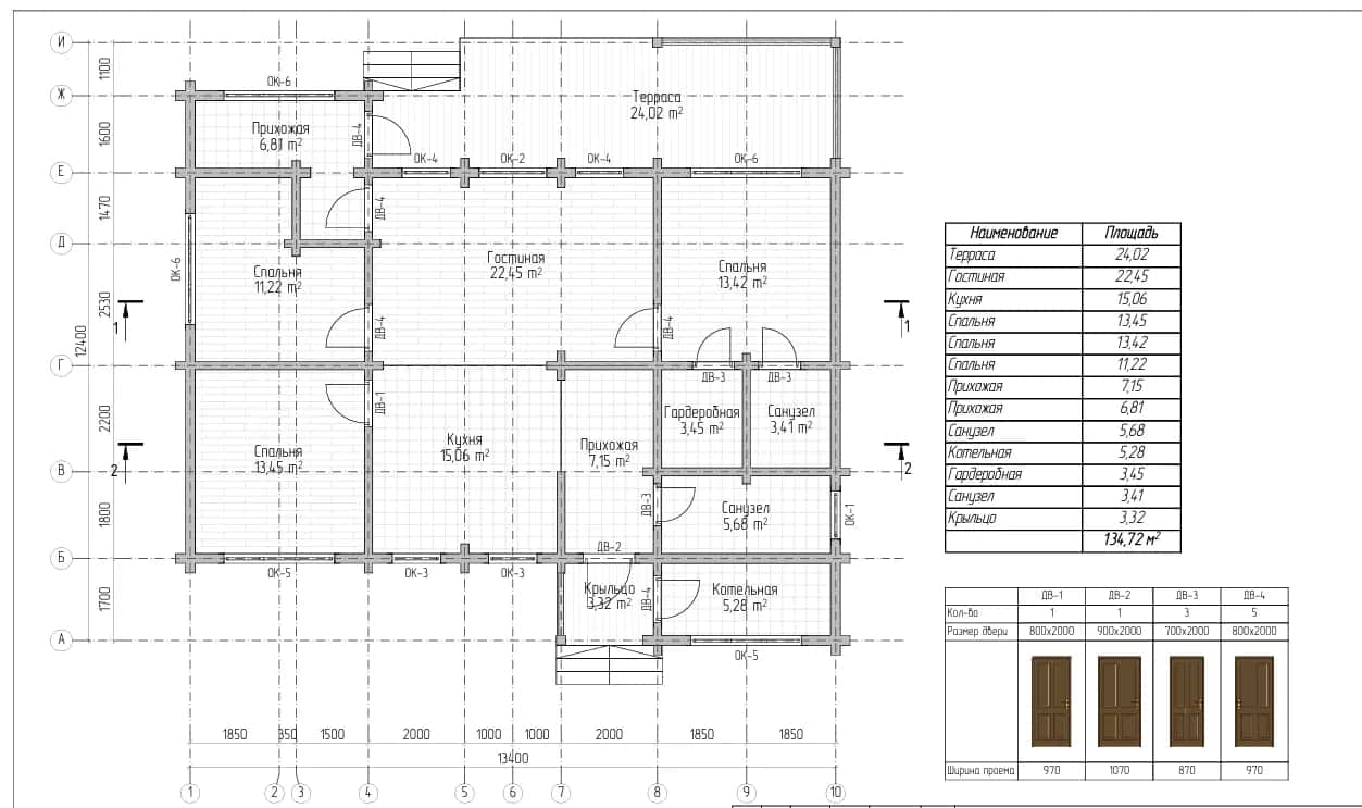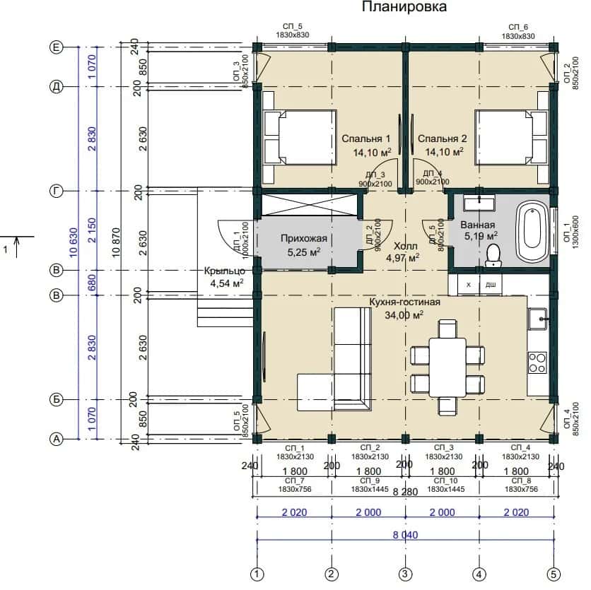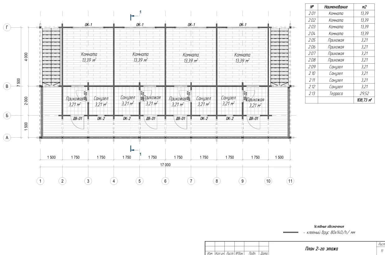 2. Домокомплект из клееного бруса - сечение бруса 80х140 мм