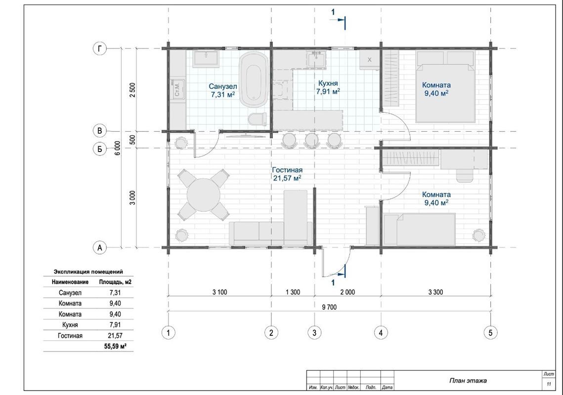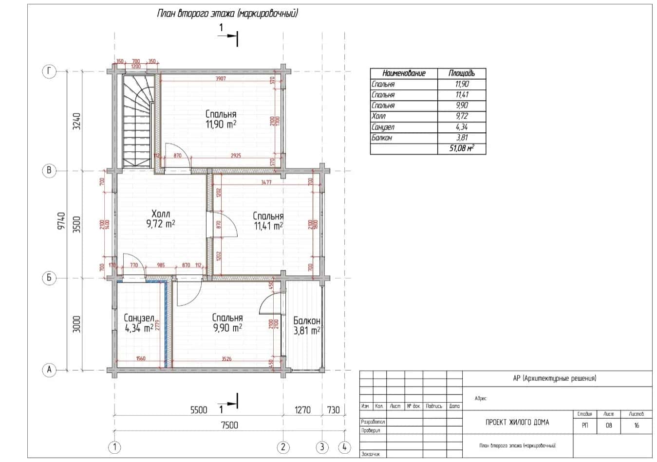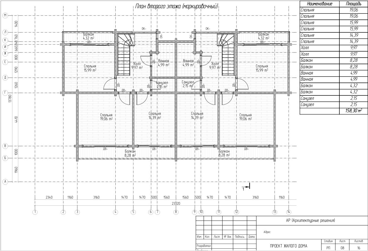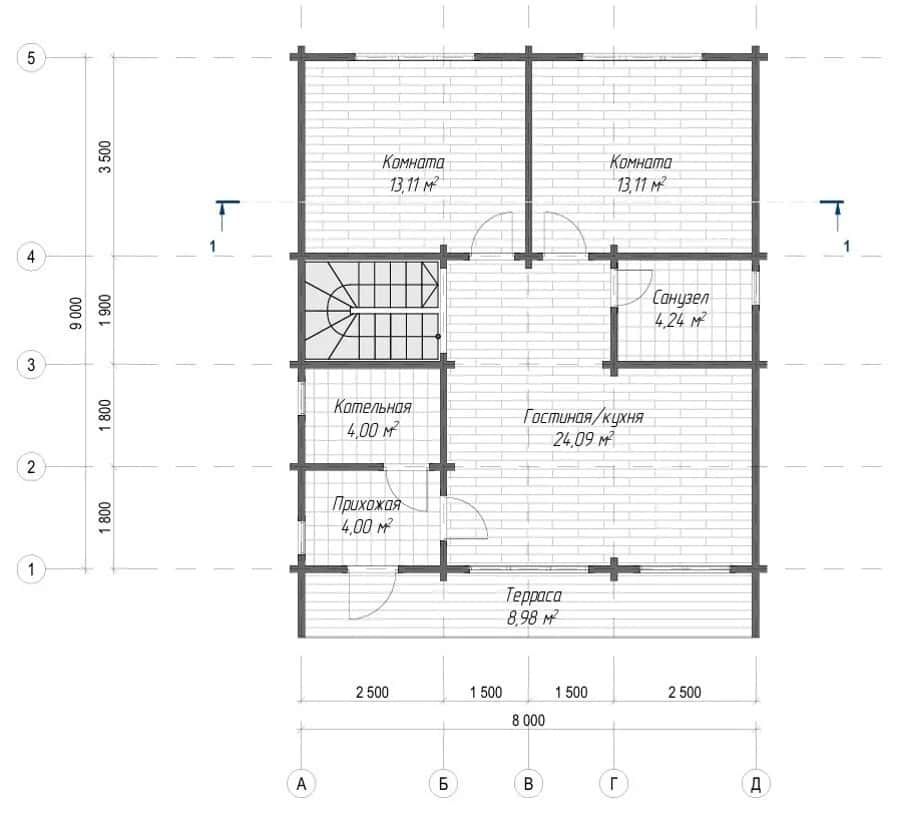 2. Домокомплект из клееного бруса - сечение бруса 80х140 мм