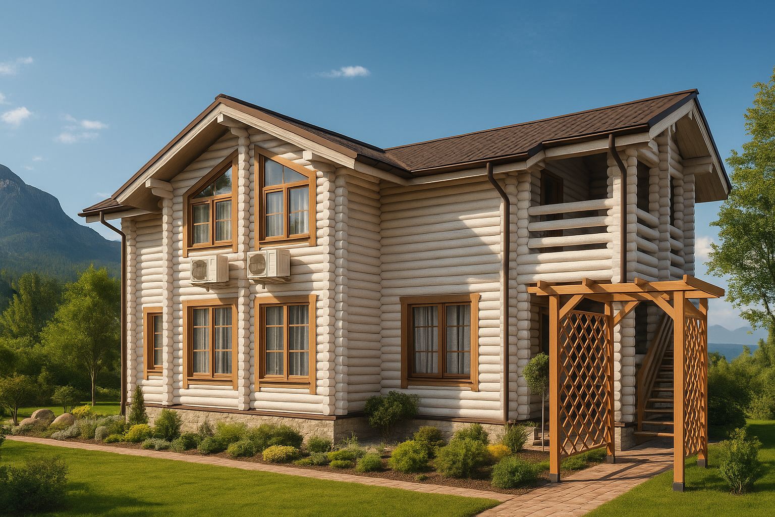 8. Металлопластиковые окна и входная дверь - белые Krauss , двойной стеклопакет, фурнитура МАСО, откосы, отливы металлические в цвет окон, москитные сетки.